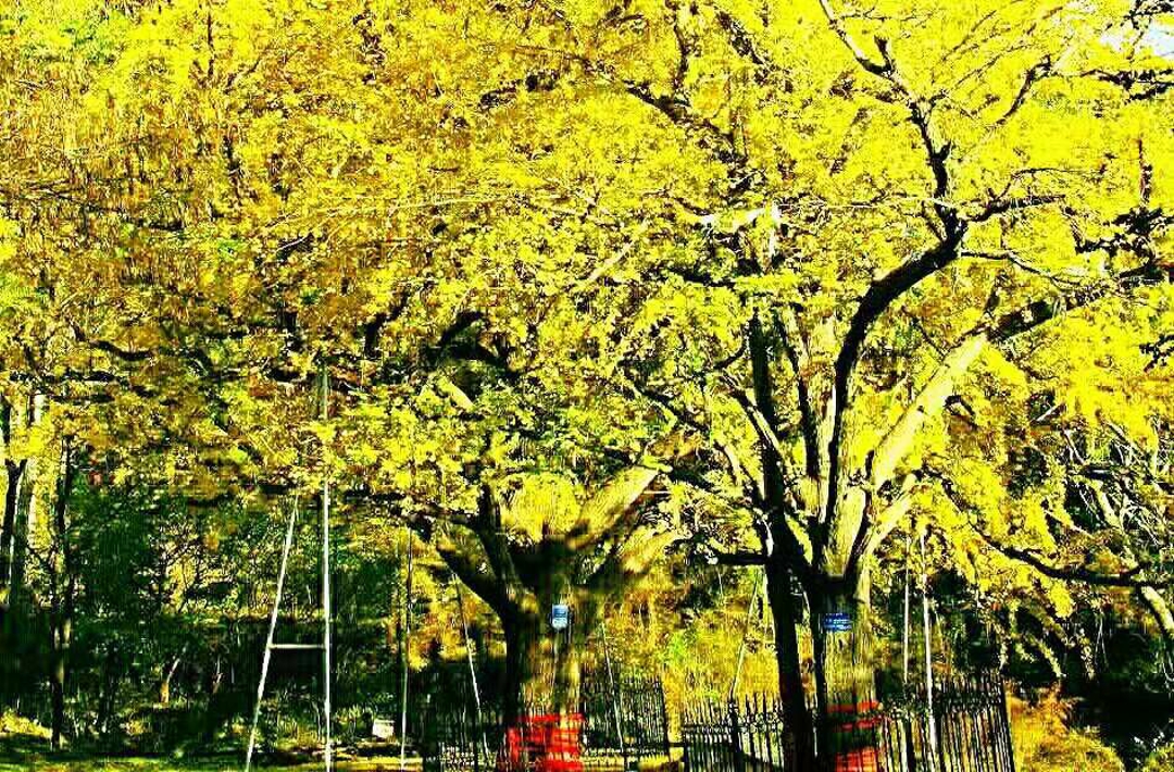 相比周边日照定林寺沂源栖真观长清灵岩寺古银杏,致公庙银杏树最大的特色是雌雄三棵组成的三口之家。