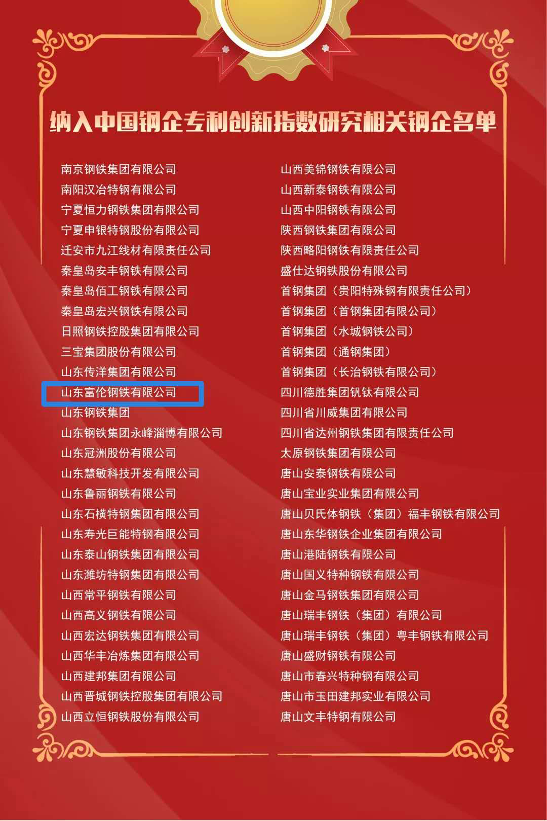 快讯 | 2020年中国钢铁企业专利创新力研究纳入名单公示-山东富伦钢铁有限公司位列其中